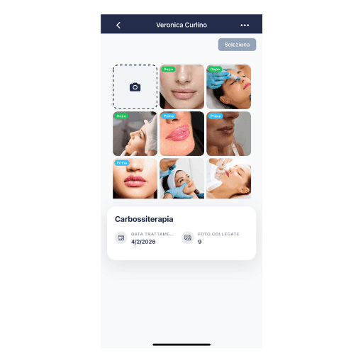 A fine giornata, assegna le foto ai pazienti in pochi secondi. Lo storico clinico si aggiorna automaticamente.