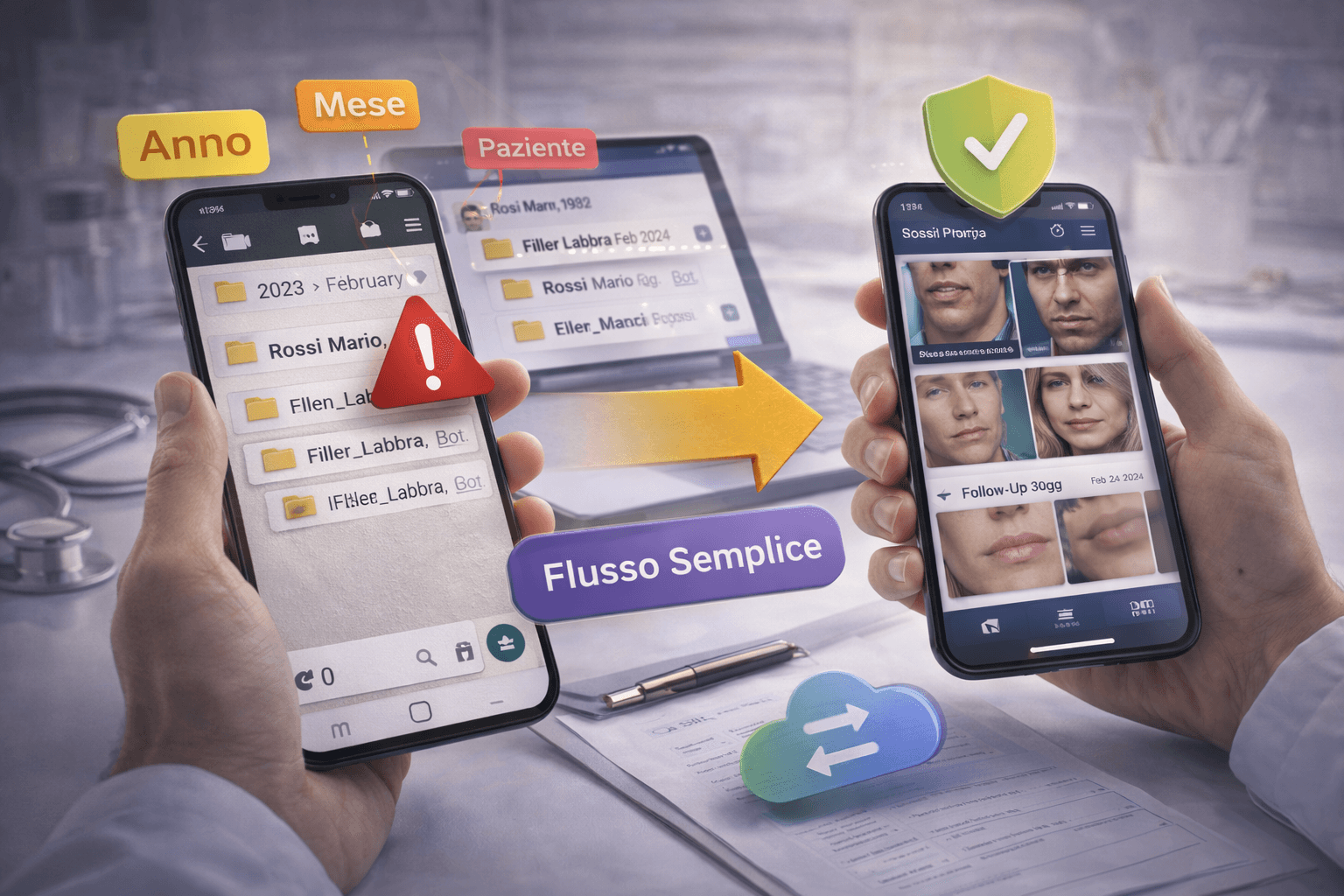 Foto cliniche in medicina estetica: perché le cartelle tradizionali non funzionano e come creare un flusso semplice per organizzare automaticamente le immagini dei pazienti.