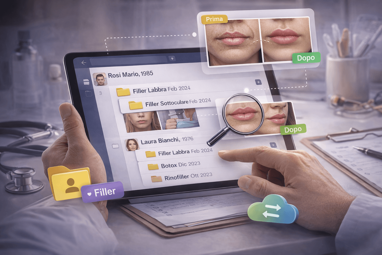 Scopri come organizzare le foto dei pazienti in medicina estetica in modo professionale, sicuro e conforme al GDPR, creando un archivio clinico digitale ordinato per paziente e trattamento senza perdere tempo nella galleria dello smartphone.